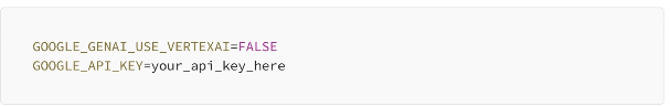 ADK needs to know your API key. The cleanest way is to create a .env file in your project folder.