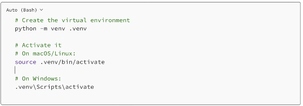You'll know it's active when you see (.venv) at the start of your terminal prompt.